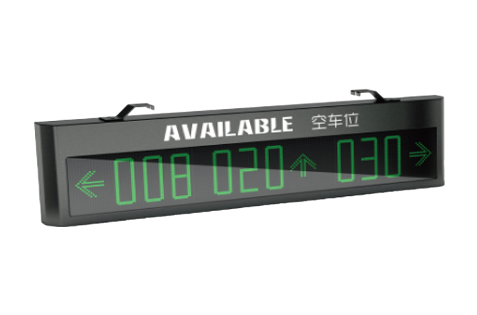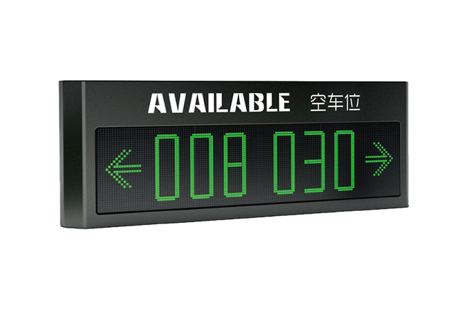 室内车位引导屏安装在车场内部重要的岔道口,车位引导屏数量和显示文字内容根据客户需要来定制,引导屏由室内高亮度LED模块、驱动电路、控制电路、支架等部分组成。用数字和文字形式实时显示所连接区域当前空闲车位数量,可24小时全天候使用。
